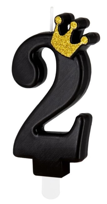 PartyPal Świeczka urodzinowa czarna ze złotą koroną cyfra 2