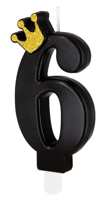 Świeczka urodzinowa czarna ze złotą koroną cyfra 6